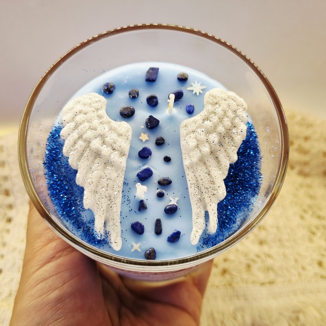 Esta vela tiene el propósito de acompañarte en tus momentos de duda, miedo o angustia. Sunluz ayuda a disipar y envolver tu aura en amor y protección.